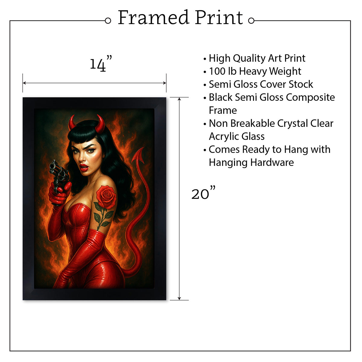 - Frame is 1.25 inch Black Matte Composite Frame with Crystal Clear Plexiglass and Comes Ready to Hang with Hanging Hardware