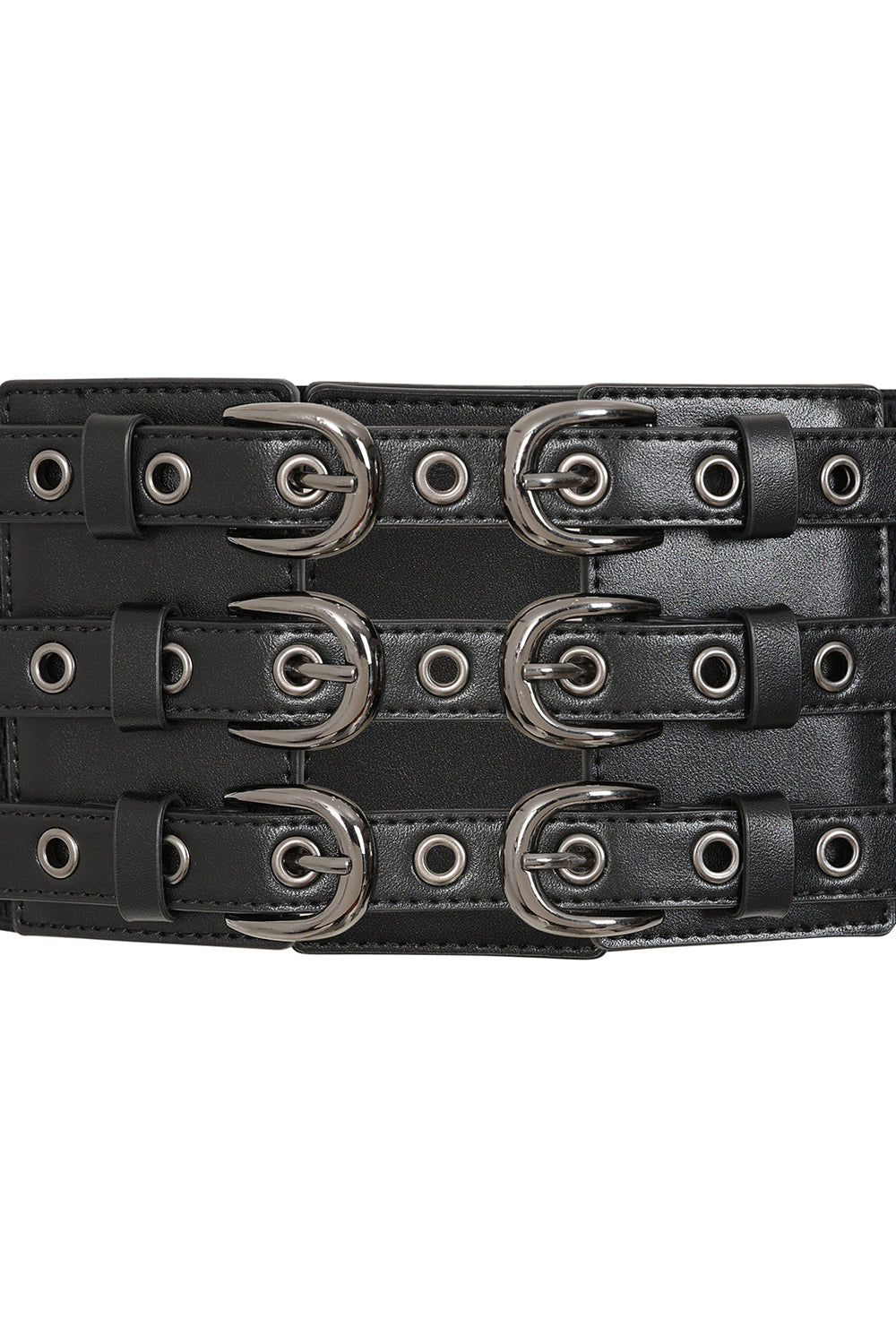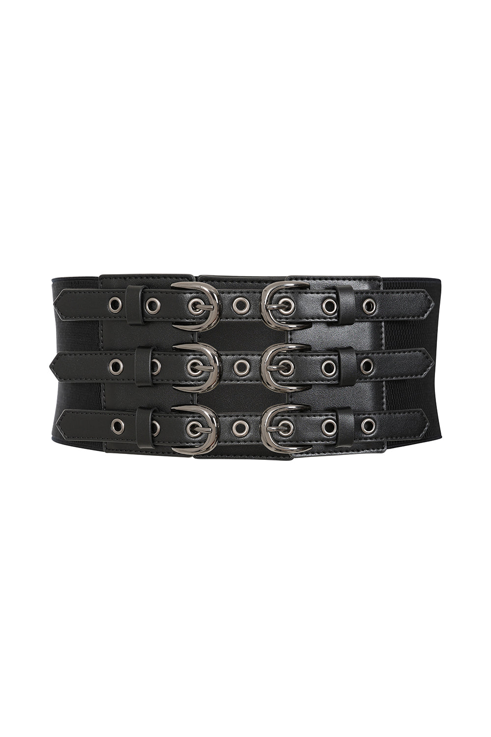 Featuring an elasticated wide design and three adjustable buckle closures. Perfect for cinching the waist, this belt adds a bold gothic vibe to any outfit!