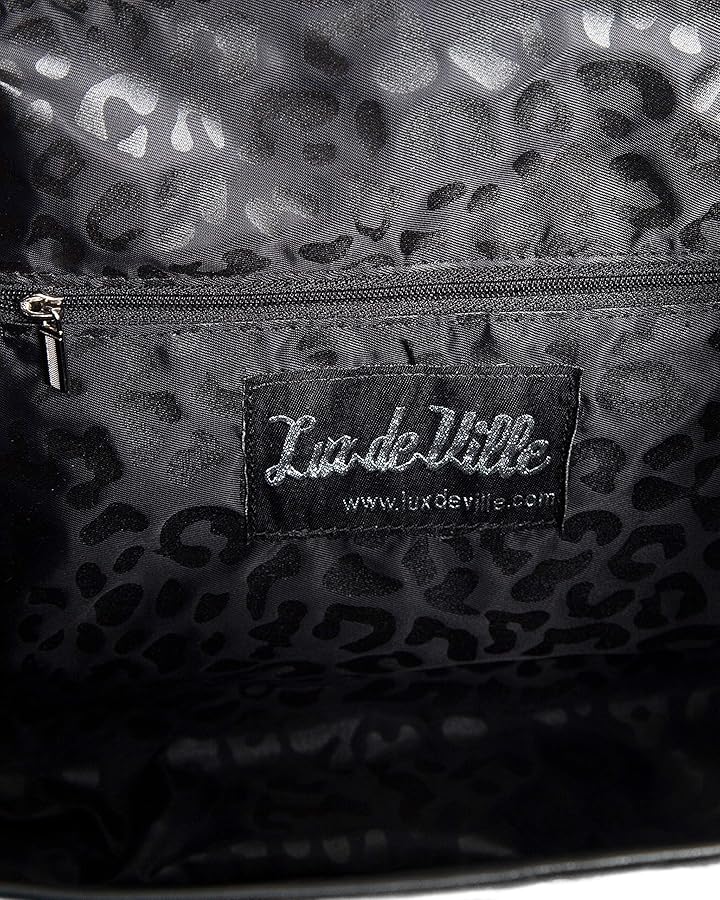 A lux de Ville staple!! These beautiful totes feature diamond stitching front and back, Lux logo plate, silver bullet feet and detachable silver dice baubles. Inside is lined with custom black on black leopard lining and an inside zipper closure pocket for storage or travel. As always there is an adjustable and detachable cross body strap and a dust ruffle bag for storage or travel. Enjoy the cuteness!