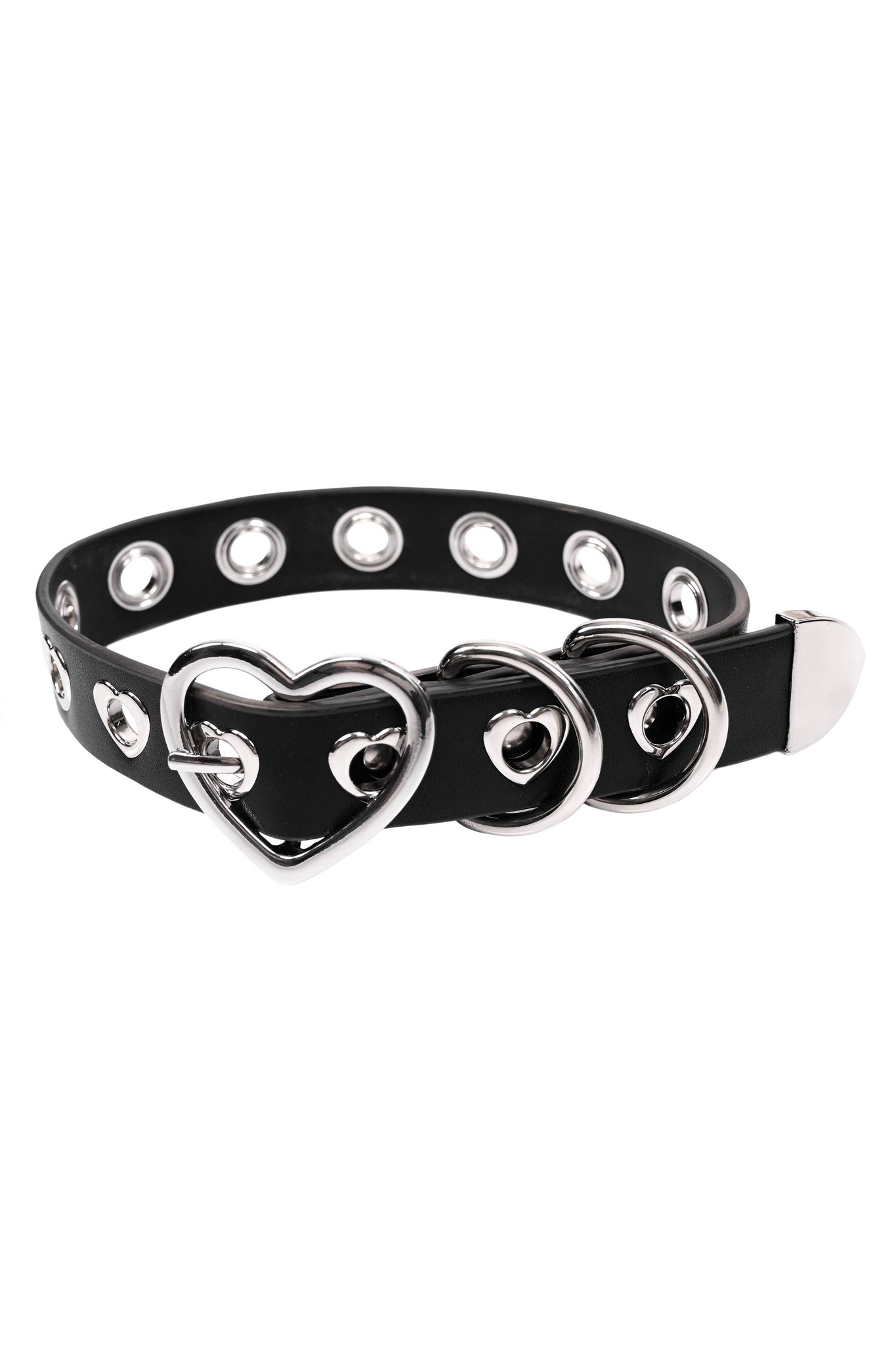This black PU choker necklace is complete with a cute heart buckle. The heart rivets are not only cute, but go all around the length of the choker, offering an extremely adjustable fit.