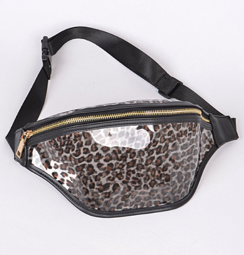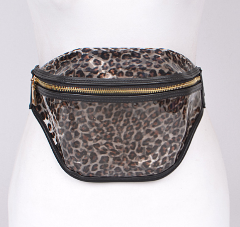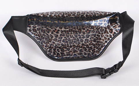 This casual waist bag features a leopard pattern and clear surface to be sure to get you in with all your goodies to the festivals!